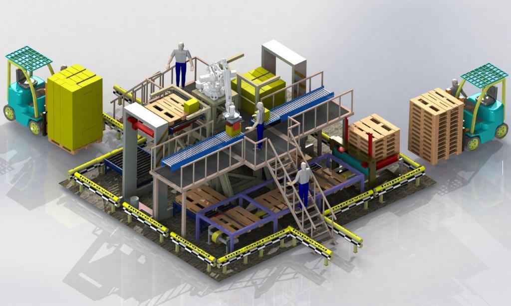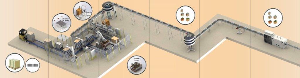 În domeniul automatizărilor industriale, MACH FTD oferă soluţii complete de proiectare, execuţie, furnizare și integrare pentru o gamă variată de sisteme automate de ambalare primară, secundară, dar și terţiară – ca în această aplicaţie (echipamente automate de ambalare cutii, sisteme de depaletizare cu robot și Vision 3D, sisteme de paletizare de capacitate mare, sisteme de paletizare compacte, paletizatoare automate sau semi-automate).