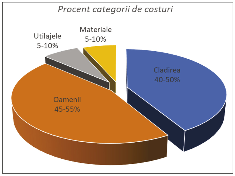 În mod normal focusul nostru merge către categoriile cele mai importante, însă nu trebuie să uitam complet de restul categoriilor; posibil ca risipa să se întâmple în procente foarte mari în categoriile mici din simplul motiv că “nimeni nu s-a interesat”. Ar trebui sa analizăm în detaliu cele două categorii forte importante: clădirea și oamenii.