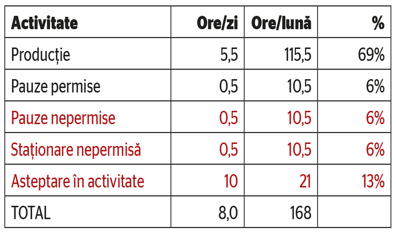 Așa cum știm toţi, cea mai importantă resursă a unei companii o reprezintă oamenii; nu există companie fără angajaţi și nu există acţiune în interiorul unei companii fără prezenţa unui om. Optimizarea costurilor cu oamenii de fapt se referă la optimizarea timpului de lucru al fiecărui om. Salariul lunar (sau costul companiei dacă includem toate cheltuielile legate de salariat) se poate împărţi la numărul de ore lucrate în luna respectivă, adică putem vorbi de un cost per oră. Din acest principiu putem trage concluzia că fiecare oră nefolosită reprezintă o risipă și ar trebui să identificăm metode pentru a o reduce. Reducerea salariilor sau a oricăror beneficii (bonuri de masă, zile de concediu, asigurări medicale, prime, etc) nu este sub nici o formă înţeleasă ca optimizare de costuri, ci mai degrabă ca restructurare în condiţii economice foarte dificile. În cele 21 de zile lucrătoare (într-o lună completă) ar trebui să avem disponibile 157,5 de ore de producţie și 10,5 ore pauze (30 min/zi pauza de masă, 7,5 ore producţie), însă realitatea nu este chiar așa …