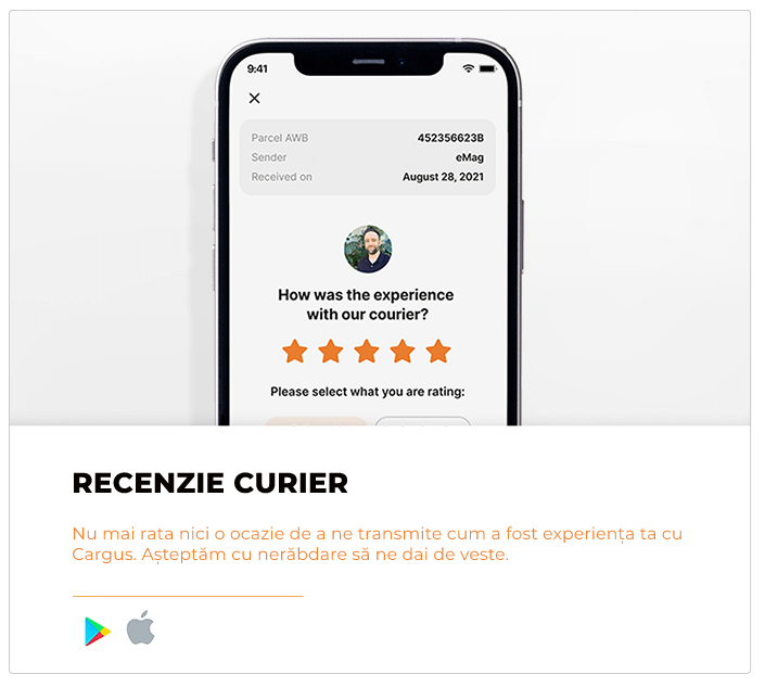 O noutate absolută pe piața de curierat, dar deja cunoscută din aplicațiile de transport, o reprezintă ratingul curierului, prin care Cargus dorește să promoveze și să recompenseze activ curierii care oferă cele mai bine cotate servicii de livrare.