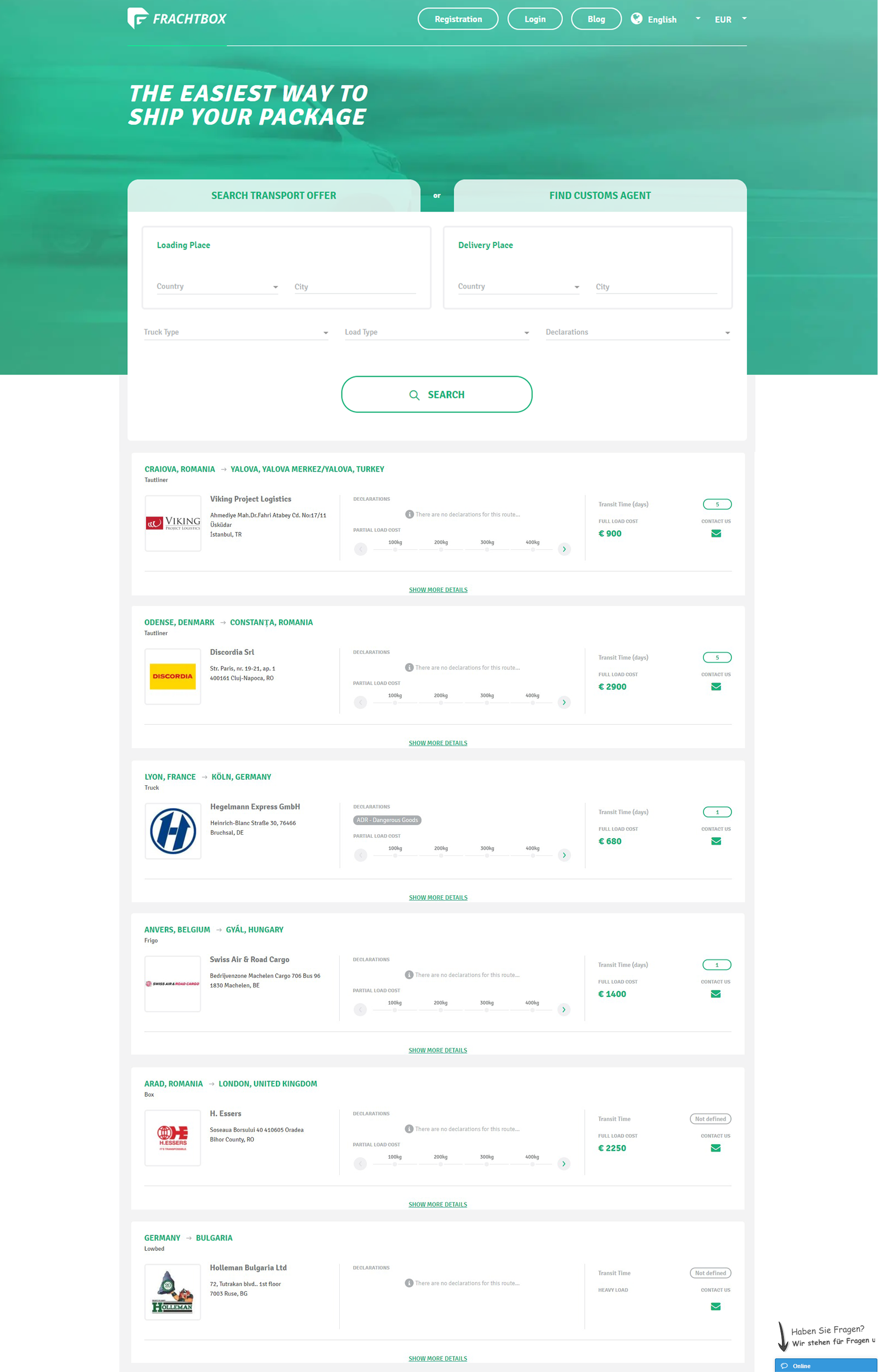 Platformele de marfă actuale sunt, în general, potrivite pentru colaborarea companiilor de transport între ele. Însă, Frachtbox este o platformă online proiectată pentru proprietarii de marfă (importatori-exportatori sau companii producătoare), gratuită și foarte prietenoasă cu utilizatorul. Platforma oferă oportunitatea companiilor de a compara ofertele de transport de la mai multe companii în doar câteva secunde, ceea ce generează economii de timp și costuri. Sistemul lucrează 24/7 și acționează ca un agent de marketing pentru companiile de transport și comisionarii vamali și le permitem clienților să lucreze cu transportatori din diferite țări. De exemplu, un client din Irlanda poate găsi foarte ușor un transportator pentru marfa lui din Turcia în România utilizând Frachtbox.com.