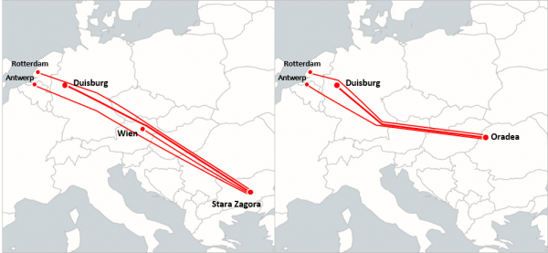 Hupac dezvoltă noi conexiuni intermodale cu România și Bulgaria pentru a răspunde cererii tot mai mari de transport intermodal către și din piețele din Sud-Estul Europei. Oradea și Stara Zaragoza se adaugă rețelei companiei.