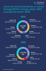 În România, există deja aproape 55.000 de persoane cu echivalent de normă întreagă în acest domeniu. Totuși, majoritatea lucrează în domeniul panourilor solare de pe acoperișuri, așa că desfășurăm programe de formare și dezvoltare a competenţelor axate și pe instalarea și întreţinerea panourilor fotovoltaice, atât pentru persoanele cu experienţă anterioară în domeniul energiei regenerabile, cât și pentru cei fără experienţă.