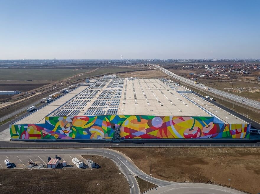 Tot pentru a face pași în dezvoltarea unui transport mai prietenos cu mediul, odată cu inaugurarea centrului logistic din comuna Fundeni, judeţul Călărași, am construit și prima staţie de încărcare electrică fast charge a camioanelor din cadrul unui depozit Lidl. Staţia funcţionează cu energie provenită de la cele 2.650 de panouri solare montate pe acoperișul depozitului și poate alimenta simultan două camioane electrice.