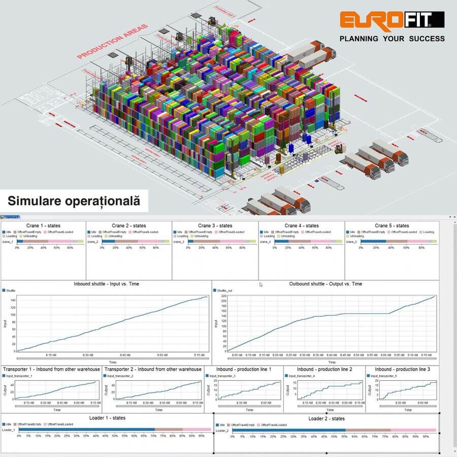 Folosind softuri dedicate pentru simularea fluxului logistic, EUROFIT a reușit să implementeze cu succes acest proiect, garantând fluxul solicitat de client.