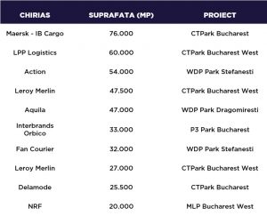 Cererea s-a polarizat în jurul Bucureștiului, care a fost ținta preferată pentru chiriași, cu 75% din suprafața închiriată în 2025, pe poziția secundă fiind Timișoara (77.100 mp), al doilea cel mai mare hub logistic din țară. Companiile de retail, e-commerce și FMCG au fost cele mai active pe piața închirierilor, cu 430.000 metri pătrați contractați, aceștia fiind urmați de operatorii de logistică, cu 217.000 mp contractați, și companiile de curierat 80.000 mp.