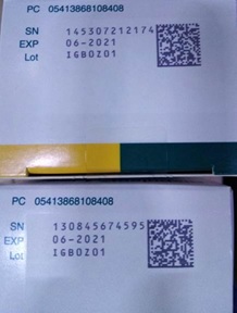 ■ indentificatorul unic, transpus într-un cod de bare bidimensional Data Matrix, format din codul produsului, numărul lotului, data expirării şi numărul serial