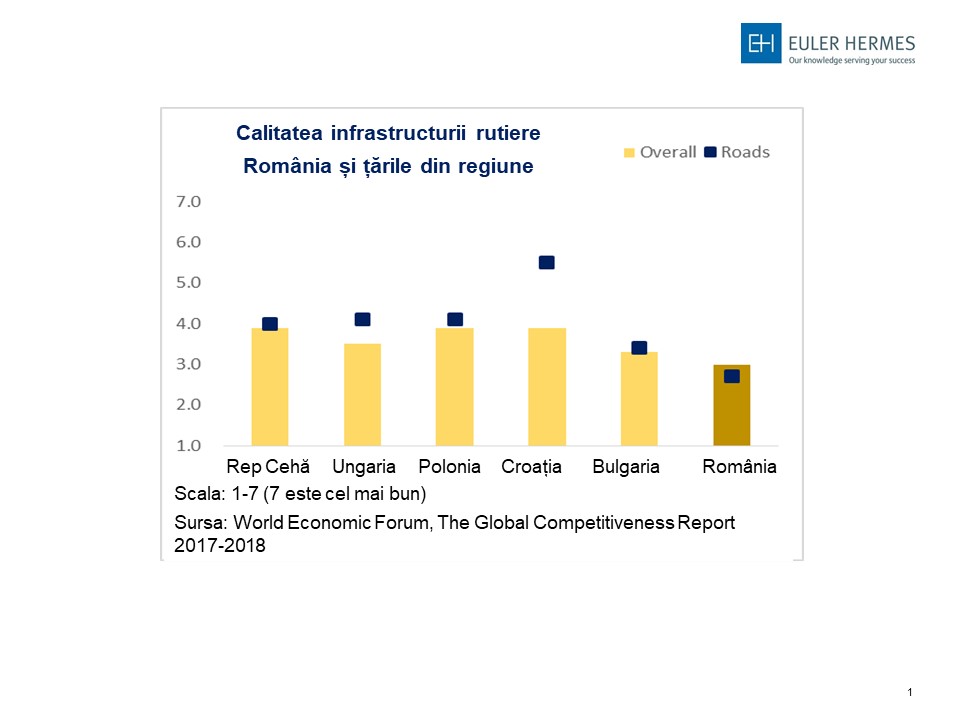 Infrastructura rămâne o piedică majoră pentru dezvoltarea industriei transporturilor și, în sens larg, a economiei naționale, confrom unor estimări recente nevoile de investiții în acest sector depășind 70 miliarde de euro, în timp ce resursele disponibile până în 2030 (conform Masterplanului de transport) sunt de 36 miliarde de euro. Infrastructura este și unul dintre factorii considerați în indicii care măsoară competitivitatea economiilor, cum ar fi și Indexul Competitivității Globale al WEF. În 2017, România s-a clasat pe locul 68 din 137 de țări în acest top, pierzând șase poziții față de 2016.